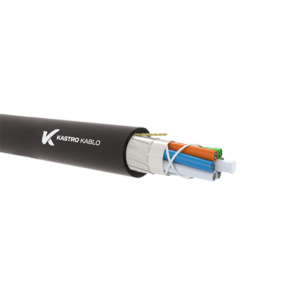 Metal içermeyen zırhlı, jel dolgulu, gevşek tüp şeklinde, UV ışınlarına dayanıklı, kemirgenlere karşı dayanıklı, su geçirmez, PE kılıflı